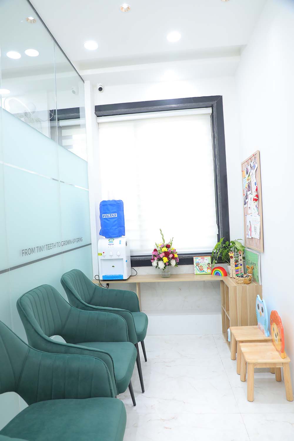 The play area is full of blocks and toys which keep the children busy while waiting also help in reducing their anxiety.The play area gives the clinic an inviting feel which helps in making the child more comfortable and relaxed